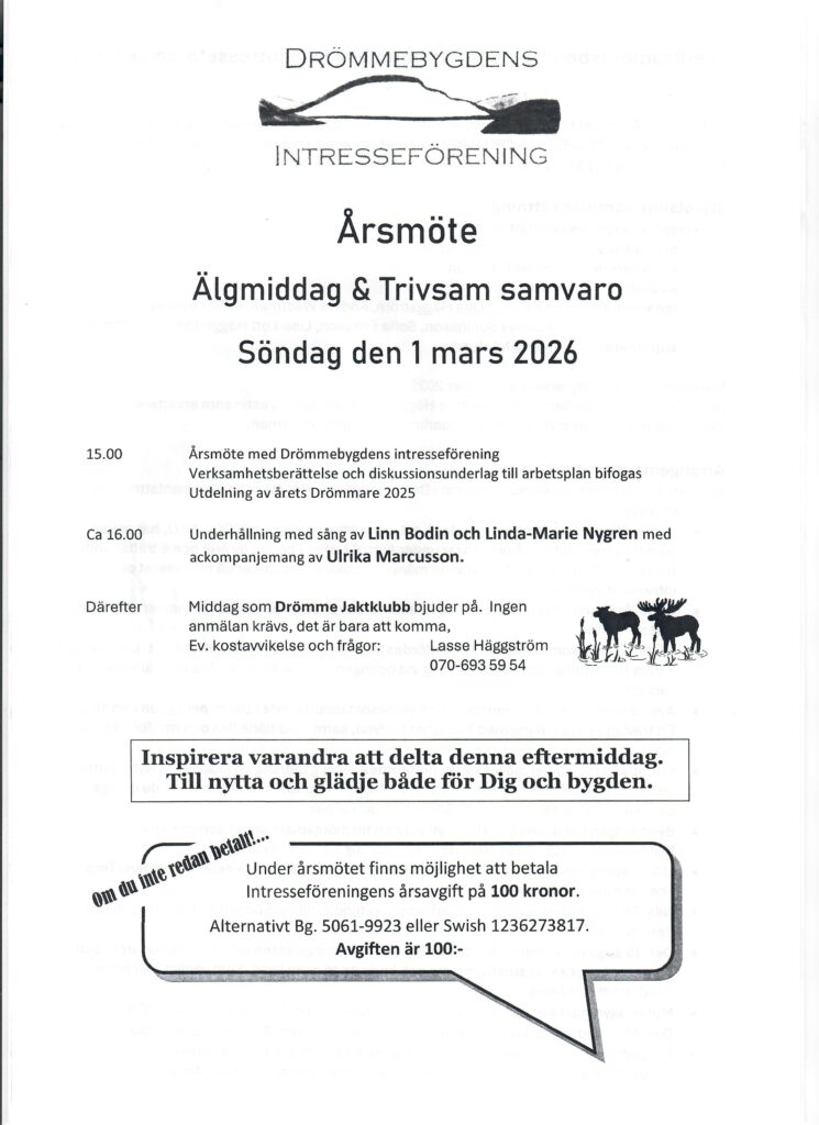 Välkommen till Drömmebygdens Intresseförenings Årsmöte!